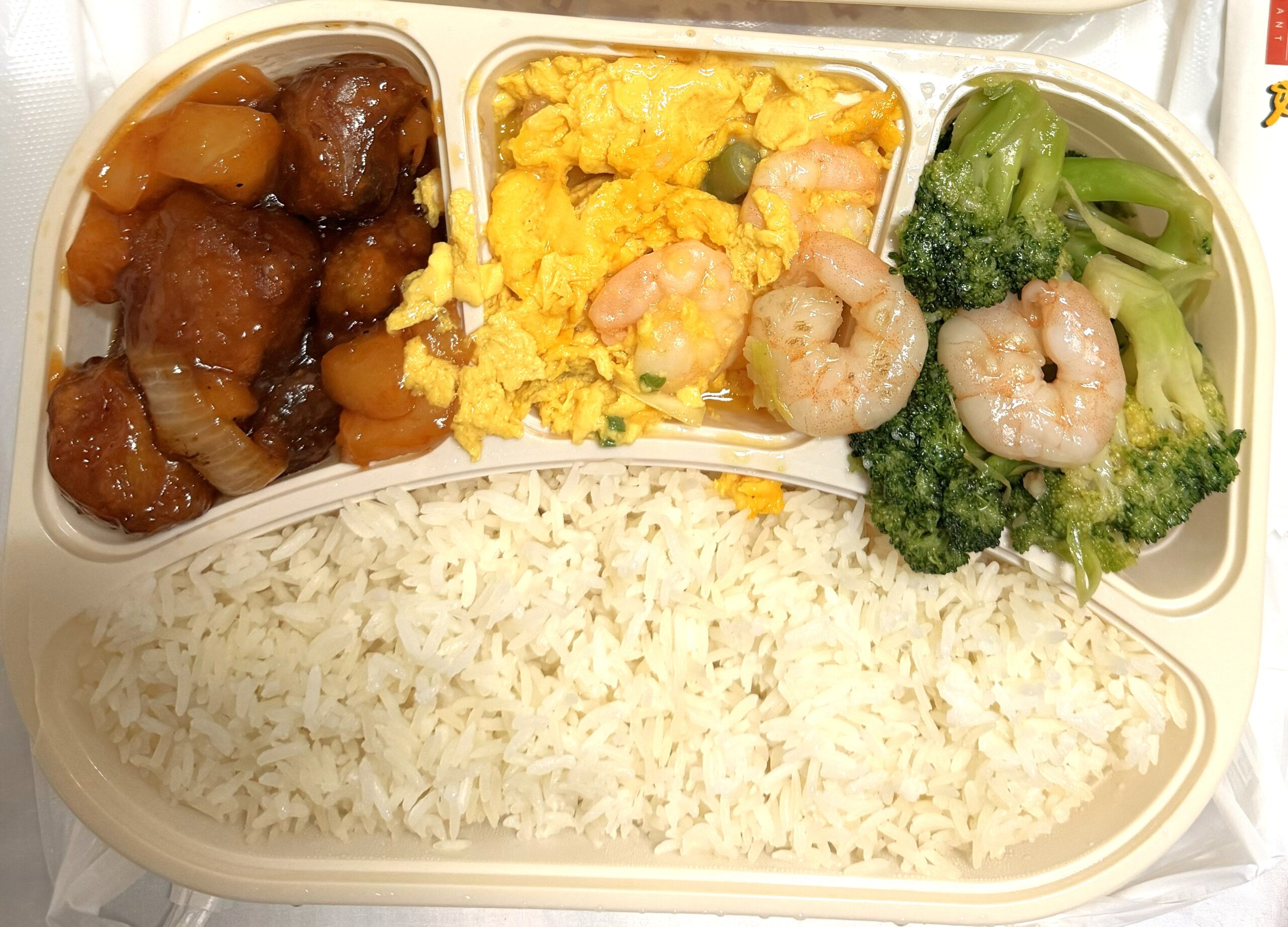 下)左から”酢豚”、”エビと玉子”、”ブロッコリー炒め”